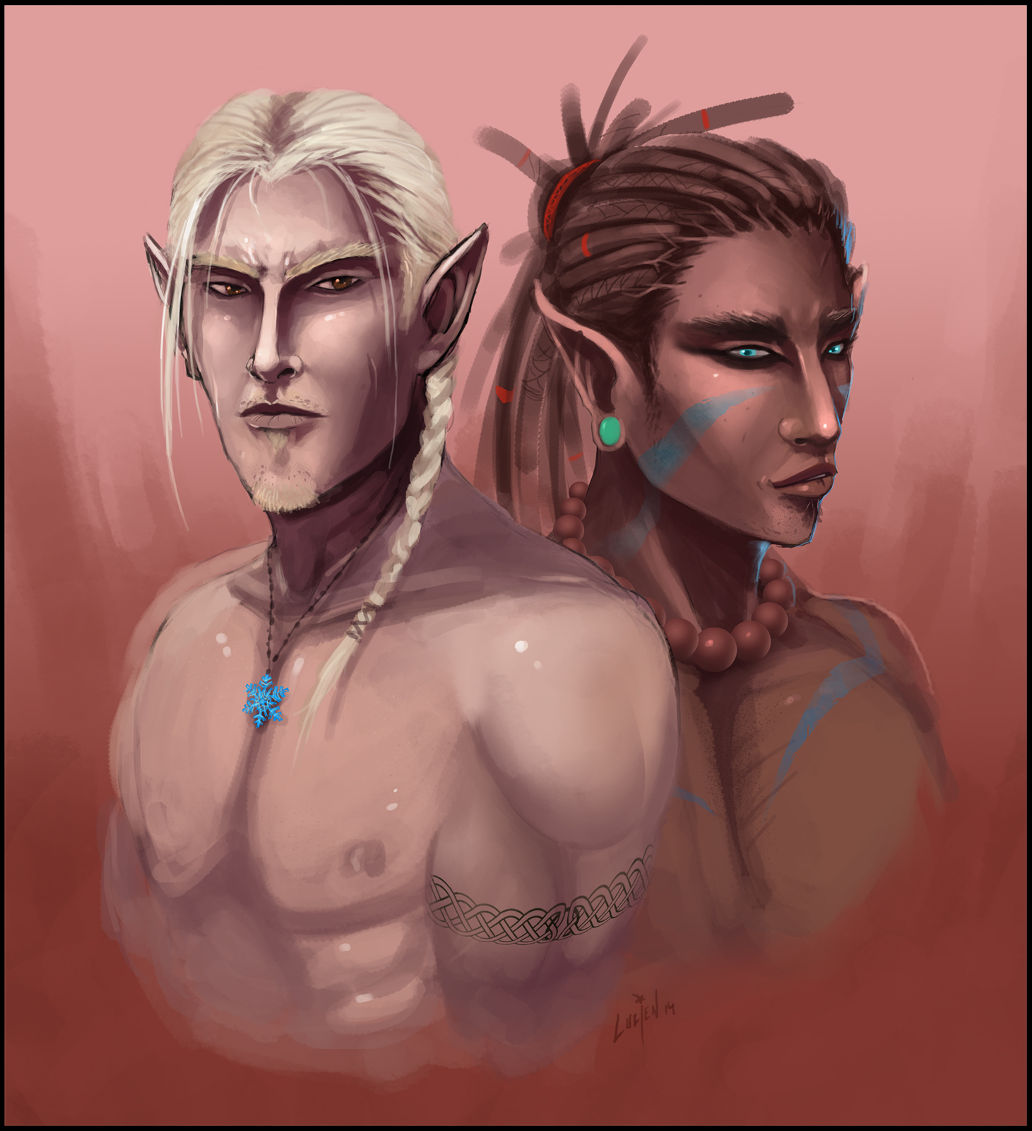 Black braids dangled from her head and blew wildly in the harsh winds. He shuddered at the dark Kazdruk markings that now vandalized her beautiful face. Her wicked black armor reflected Elu’s fainthearted and hopeless expression. There she stood, a twisted perverted version of his lost, long love. She stood strong, gripping a blood soaked staff. Her orange cinder like eyes burned through the dark haze of war and pierced sharply into Elu’s very soul.